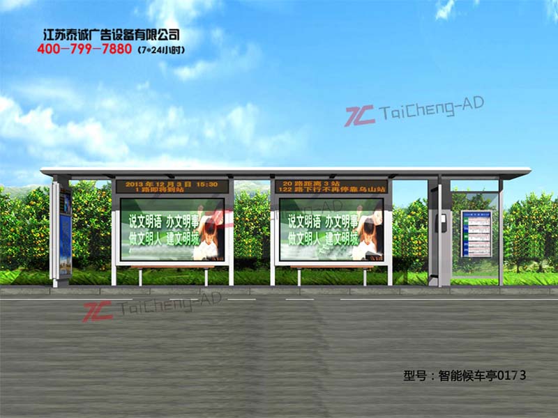 歡迎光臨江蘇泰誠設備科技有限公司 公司專業生產定做公交站臺、候車亭,宣傳欄,標識標牌等系列產品!